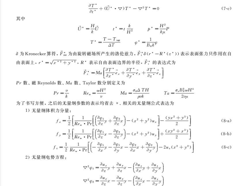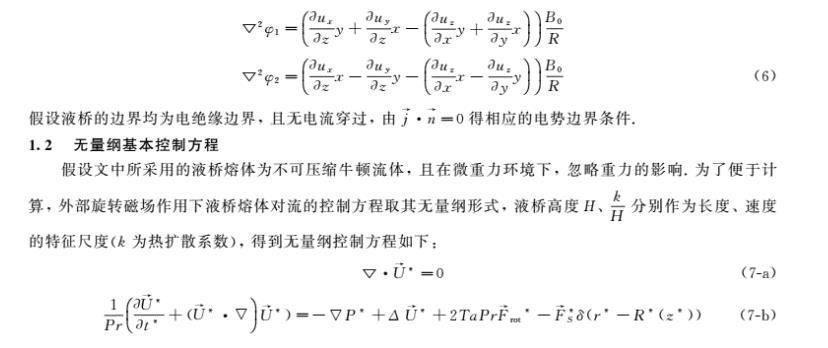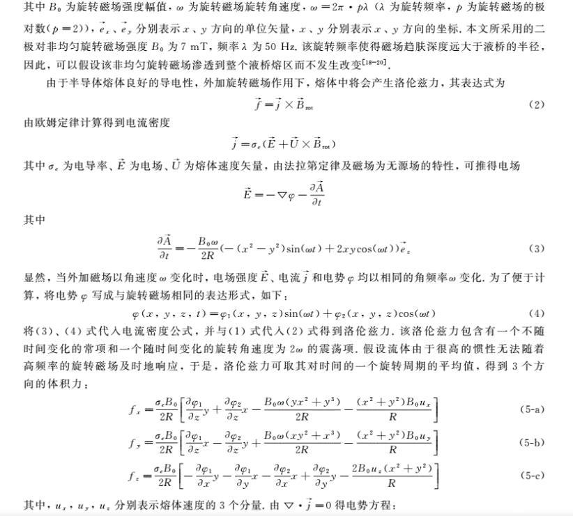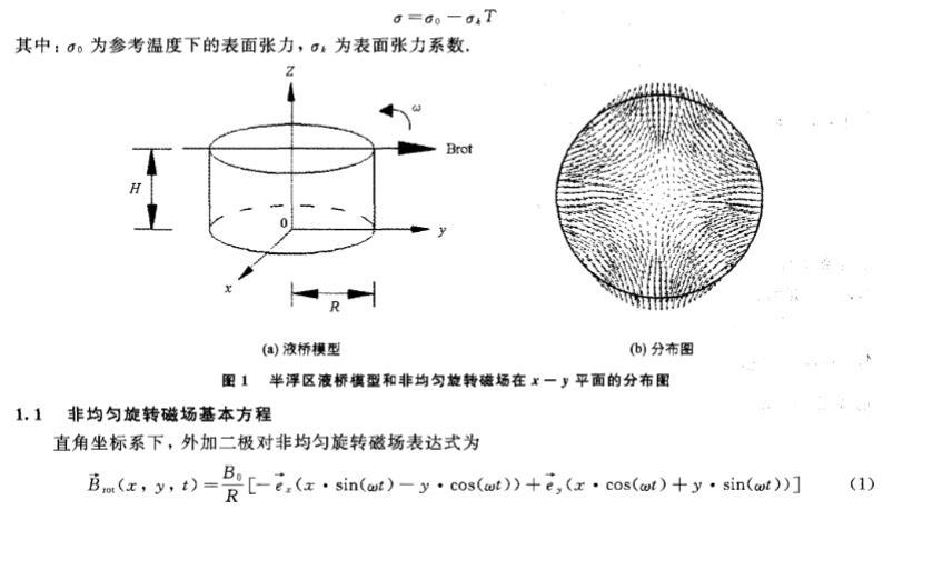 基于浮區(qū)法晶體生長(zhǎng)中非均勻旋轉(zhuǎn)磁場(chǎng)對(duì)流控制研究工作鮮有的現(xiàn)狀,為了進(jìn)一步完善外加旋轉(zhuǎn)磁場(chǎng)對(duì)浮區(qū)熔體的對(duì)流控制的理論研究,筆者引用了有限長(zhǎng)-α模型的思想,建立了三維磁流體動(dòng)力學(xué)模型,研究了微重力下外加二極對(duì)非均勻旋轉(zhuǎn)磁場(chǎng)對(duì)浮區(qū)熔體表面張力對(duì)流的控制作用。