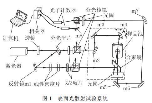 兩種酯類的表面張力和黏度由表面光散射法同時獲得。圖1為表面光散射試驗系統圖,光源采用單縱模激光器(瑞典Cobolt公司 Cobolt 05-01),功率為1W。測量時,低溫下由于散射信號較弱而采用較大的功率(300mW~500mW);高溫下散射信號較強,可以適當降低入射光的功率,尤其是接近臨界溫度時,僅需幾毫瓦即可完成測量。信號采集采用雪崩光電二極管(APD)單光子計數器(美國Excelitas公司SPCM-AQRH-14-FC),兩路APD同時采集散射光信號,利用兩路信號之間存在光程差消除單個APD的后脈沖效應。經兩路APD光電轉化后,利用數字相關器(德國ALV公司 ALV-LinCorr)對兩路信號進行時間互相關計算,進而提取流體表面波所攜帶的頻率和弛豫時間信息。試驗樣品池的材料為316型不銹鋼,將加熱絲均勻纏繞在試驗樣品池表面用于精確控制其溫度,溫度控制采用Fluke 2100p高精度溫度控制器。溫度測量采用標定過的鉑電阻溫度計Pt100,其實際測溫精度接近于二等標準鉑電阻溫度計。試驗系統的溫度控制和測量范圍為298K~573K,溫度的穩定性為±5mK/(2h),溫度測量精度為±25mK(置信水平為95%)。試驗系統測量表面張力和黏度的擴展不確定度(置信水平為95%)分別為1%和2%。該試驗系統已成功測量過制冷劑、燃料、離子液體等多種類型流體工質,詳細的系統構建和表面光散射理論可見相關文獻。