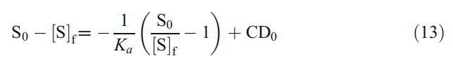 其中,CD/S、[S]f、[CD]f、CD0和S0分別為包合物、游離表面活性劑、游離CD、總CD和總表面活性劑濃度。通過(guò)組合和重新排列等式。9-11,我們得到了以下關(guān)系式: