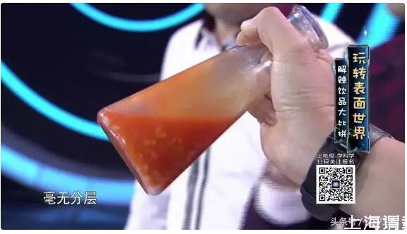 將碳酸飲料、果汁、米湯分別與辣椒油混合,能夠與辣椒油融合在一起的,就是可以解辣;如果和辣椒油分層,就是不能解辣。