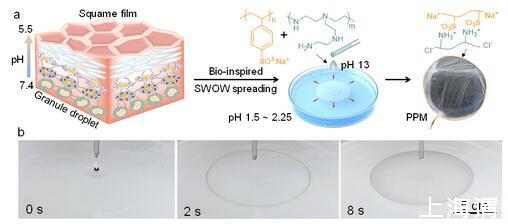圖1受皮膚分化過程啟發(fā)的水-水鋪展與聚電解質(zhì)膜制備機(jī)制