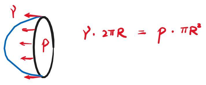 表面張力×圓周長=壓強(qiáng)×圓面積