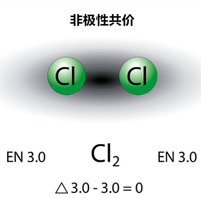 當分子中兩個原子電負性的差異為0時,原子之間為非極性共價;
