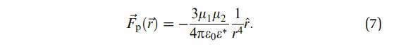 正如預期的那樣,對于較大距離,它減少到兩點偶極子r 4的力。這些表達式不描述實驗相關區間(2+0.1)R 10R內的域之間的相互作用,因此必須對等式(4)進行數值積分。與解析表達式相比,該4D積分在模擬中代表了更多的計算工作量。這就是為什么更容易近似磁疇中心點偶極子的相互作用,偶極矩mi表示磁疇區域上的偶極密度,mi=sAi。然后,垂直于界面的點偶極子的對電勢為