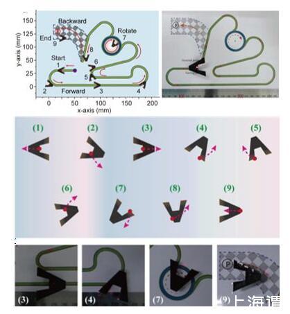通過實驗探索發現三角形的驅動薄膜在光照射底邊可以很快游動,但卻存在方向性不可控的缺陷。要使其可完成液面直線游動、轉彎、自旋轉等操作,三角形薄膜顯然難以辦到。