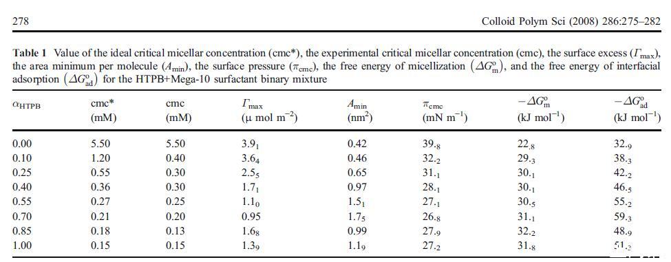 根據(jù)cmc值,還可以根據(jù)以下方程[1]評估膠束化的標(biāo)準(zhǔn)自由能ΔGo m: