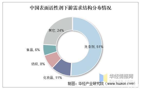 中國表面活性劑下游需求結構分布情況