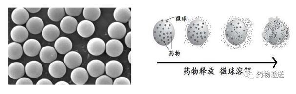 微球(Microrspheres)是指粒徑在微米級別的球體,藥物遞送領域的載藥微球,則指將藥物溶解或分散于聚合物材料中所形成的微小球體或類球體,粒徑一般在1~250μm范圍內,屬于基質型骨架微粒。