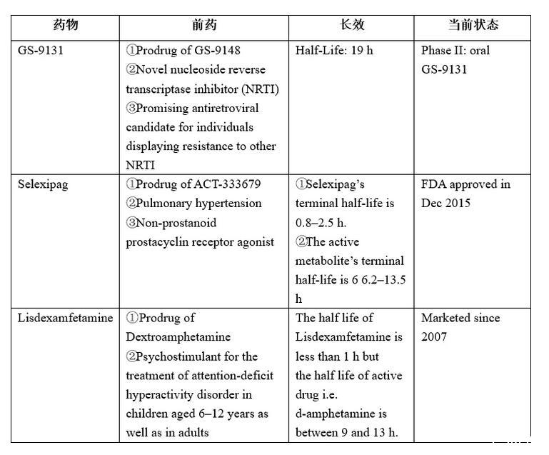 表1.FDA批準的長效前藥