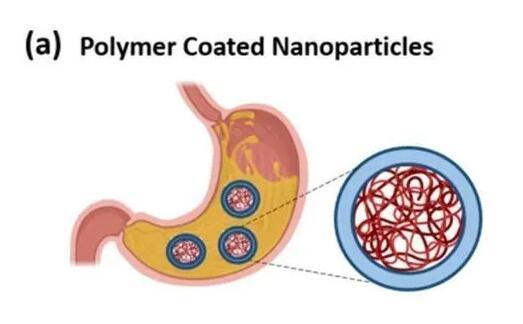 納米顆粒的高表面積體積比,提高了藥物的溶解性和穩定性。納米粒的粒徑范圍一般為100~1000nm。藥物可以被包裹在納米顆粒中以獲得持續釋放,進而保護藥物,免受劇烈的pH值變化和胃腸道惡劣的酶環境的影響。納米顆粒的大小、形狀、表面電荷會影響藥物的藥代動力學。