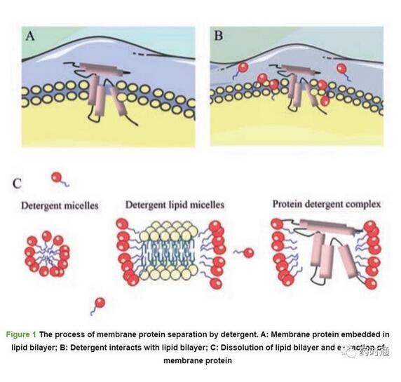 盡管新型洗滌劑在一定程度上提高了分離純化過程中MPs的穩(wěn)定性,但新舊洗滌劑都有一些共性的缺陷[28]:①對(duì)于未知性質(zhì)MPs的分離、純化和穩(wěn)定的洗滌劑選擇,需要進(jìn)行廣泛篩選;②洗滌劑以形成膠束的形式分離純化MPs,常常會(huì)導(dǎo)致MPs失去與脂質(zhì)和其他蛋白質(zhì)的天然相互作用;③穩(wěn)定分離MPs效果好的洗滌劑有時(shí)會(huì)干擾下游應(yīng)用。因此,無法預(yù)測(cè)哪種洗滌劑對(duì)給定的蛋白質(zhì)最有效,需要通過反復(fù)實(shí)驗(yàn)來確定。