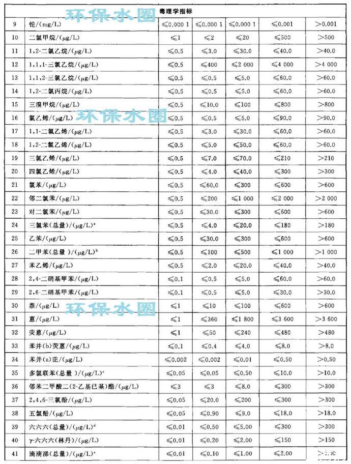 依據我國地下水質量狀況和人體健康風險,參照生活飲用水、工業、農業等用水質量要求,依據各組分含量高低(pH除外),分為五類。