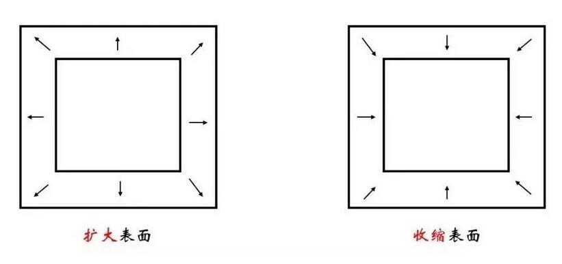 油墨不溶于水,當(dāng)它接觸到水的一瞬間就會(huì)立刻擴(kuò)散開(kāi)來(lái)。油墨的擴(kuò)散會(huì)帶來(lái)水表面上面積的增大,如下圖所示。而擴(kuò)大表面就會(huì)給船帶來(lái)一定力的作用,從而造成船的運(yùn)動(dòng)。