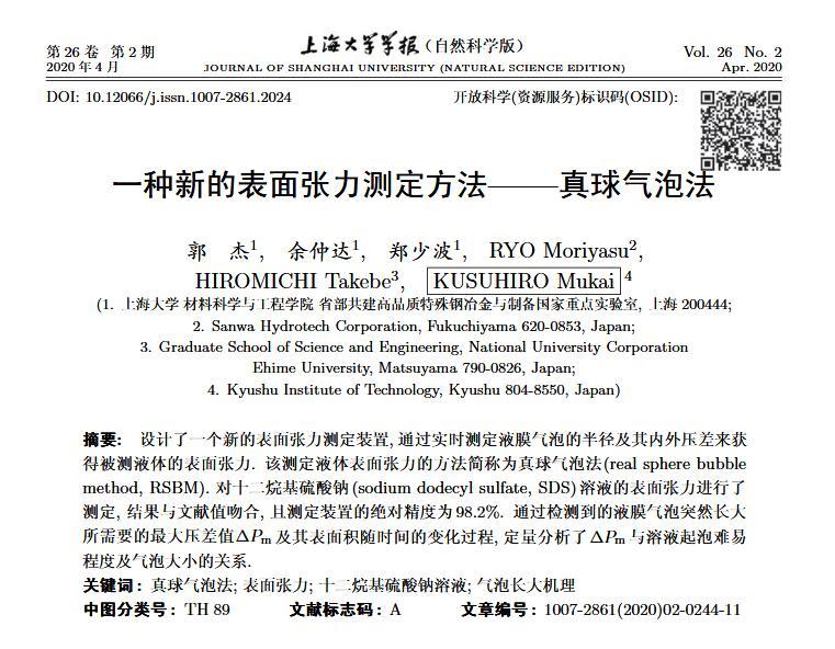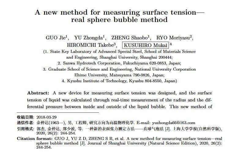 一種新的表面張力測(cè)定方法——真球氣泡法