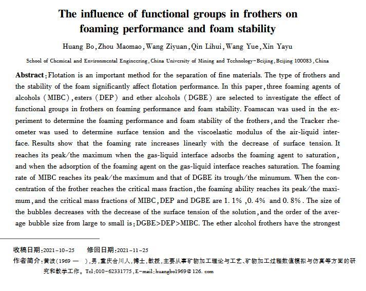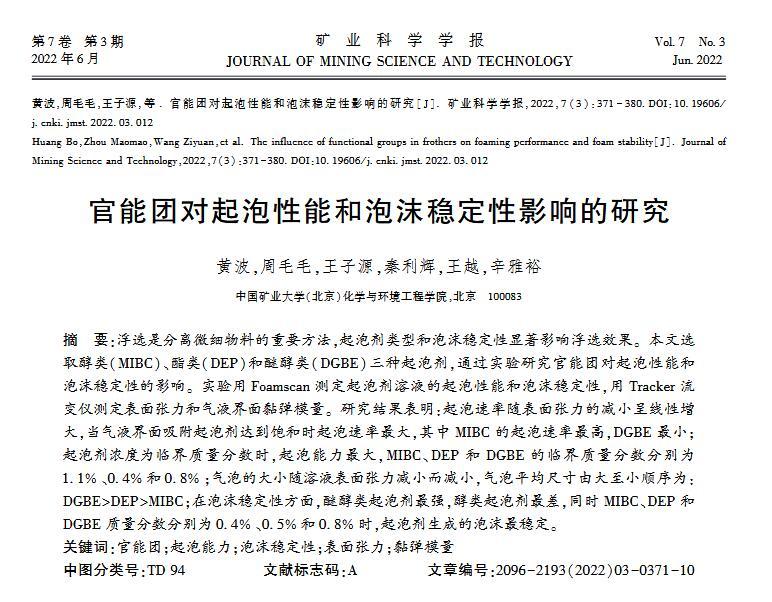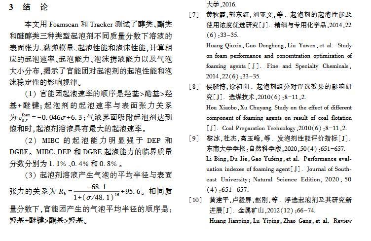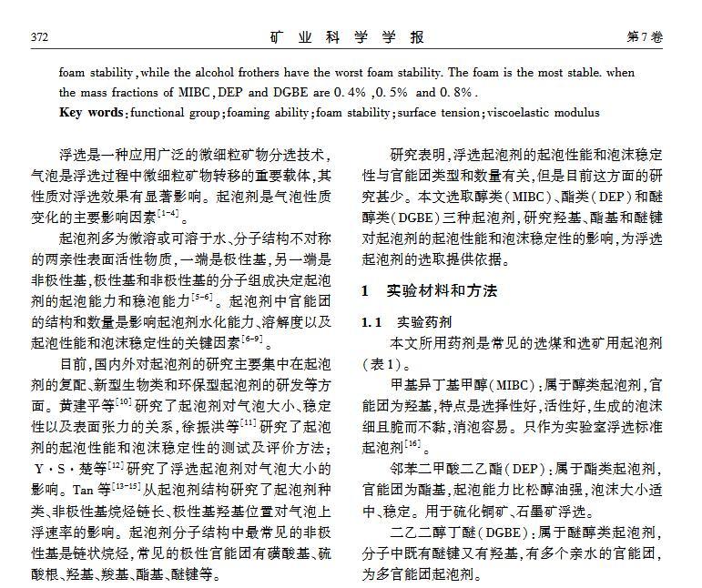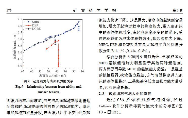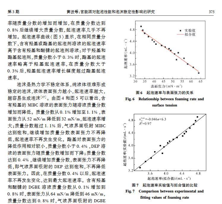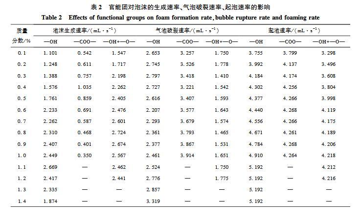 官能團(tuán)對(duì)起泡性能和泡沫穩(wěn)定性影響的研究