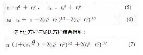 OWRK理論將液體的表面張力和固體的表面能分別分解為獨(dú)立的色散分量和極性分量,固液兩接觸相間的界面張力滿(mǎn)足如下公式: